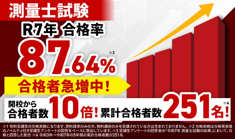測量士予備校選びに欠かせない項目の1つが「合格率」、「合格者数」などの実績です。